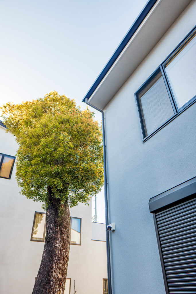 旧家からの和の雰囲気を継承させたい、樹齢100年を超えるクスノキ・旧家門を残したいというオーナーの要望に応える建築計画とし、